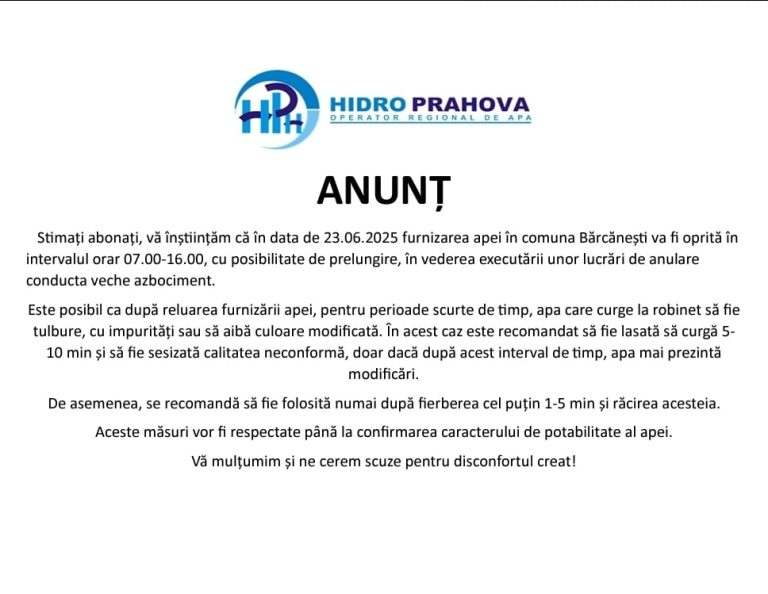 📢 Anunț important pentru toți locuitorii comunei Bărcănești!